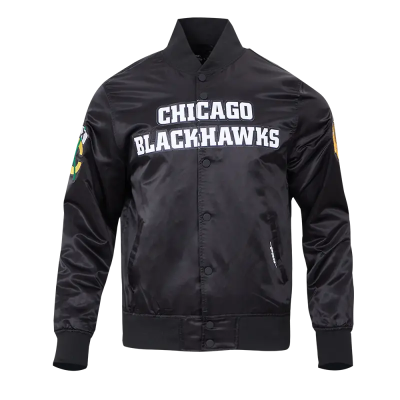 NHL CHICAGO BLACKHAWKS CLASSIC MEN’S SATIN JACKET (BLACK)