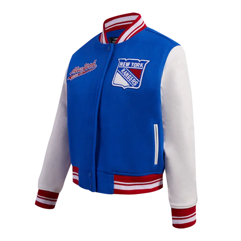 NHL NEW YORK RANGERS CLASSIC WOMEN’S VARSITY JACKET (ROYAL BLUE\/WHITE)