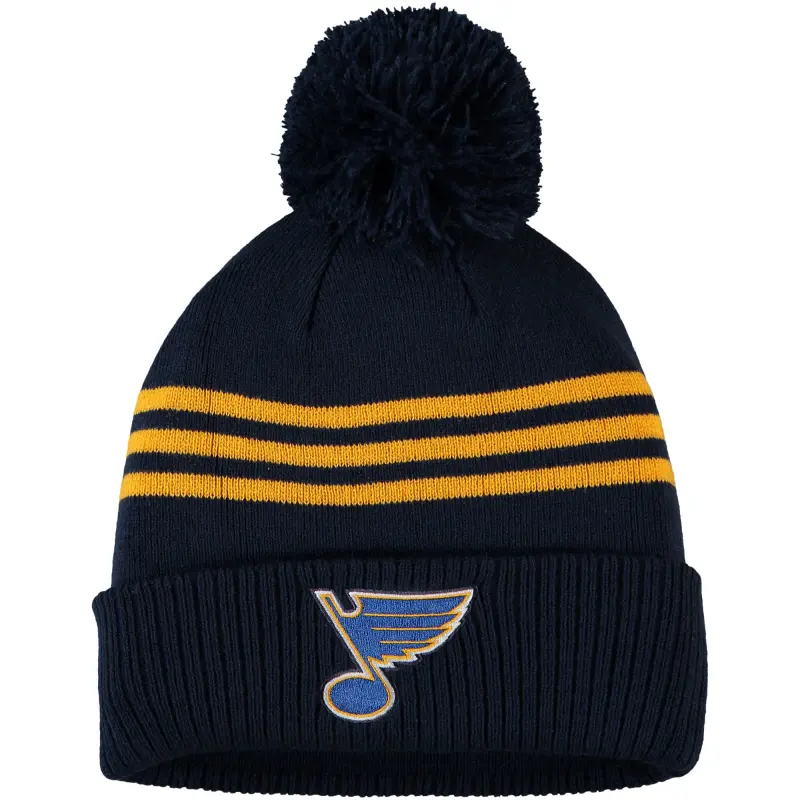 Men’s adidas Navy St. Louis Blues Locker Room Three Stripe Cuffed Knit Hat with Pom