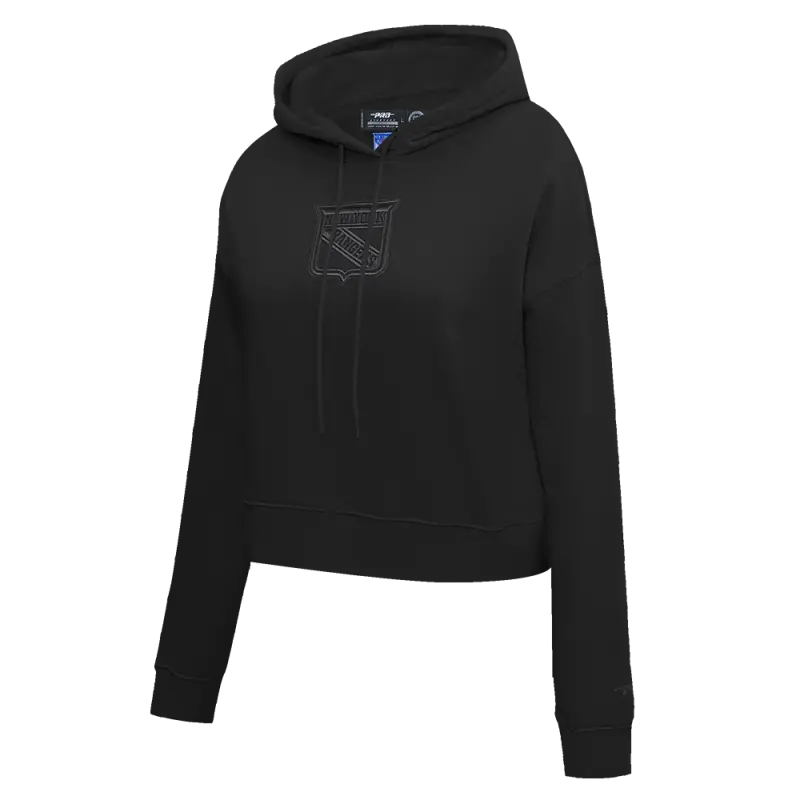 NHL NEW YORK RANGERS NEUTRAL WOMEN’S CROPPED PULLOVER HOODIE (BLACK)