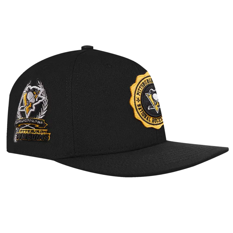 NHL PITTSBURGH PENGUINS CREST EMBLEM WOOL SNAPBACK HAT (BLACK)