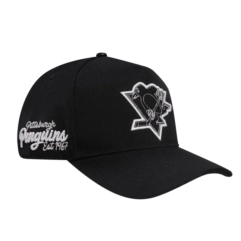 NHL PITTSBURGH PENGUINS RETRO CLASSIC UNISEX WORDMARK LOGO WOOL SNAPBAC (BLACK)