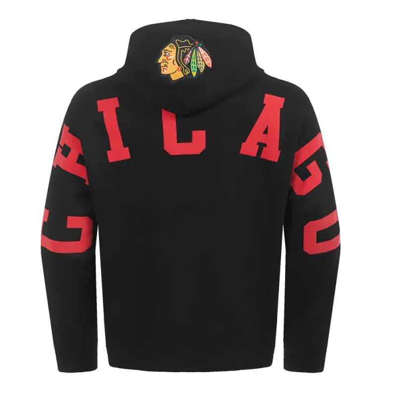NHL CHICAGO BLACKHAWKS WINGSPAN MEN’S DROP SHOULDER FLEECE PULLOVER HOODIE (BLACK)