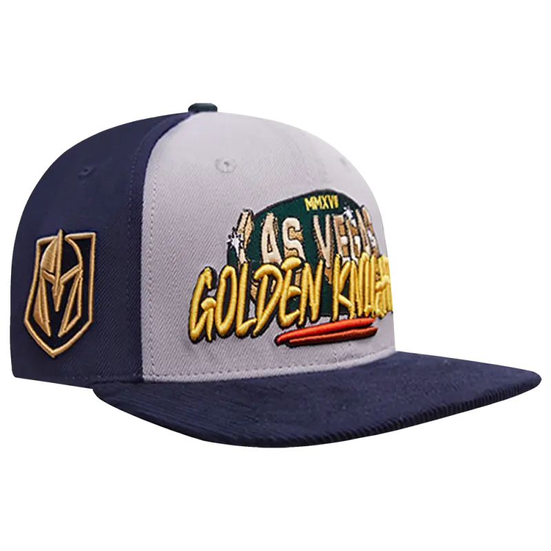 NHL VEGAS GOLDEN KNIGHTS CORDUROY VISOR WOOL SNAPBACK HAT (GRAY\/MIDNIGHT NAVY)