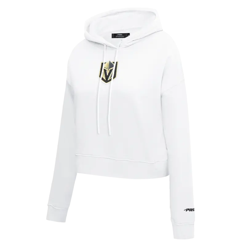 NHL VEGAS GOLDEN KNIGHTS CLASSIC WOMEN’S FLEECE CROPPED PULLOVER HOODIE (WHITE)