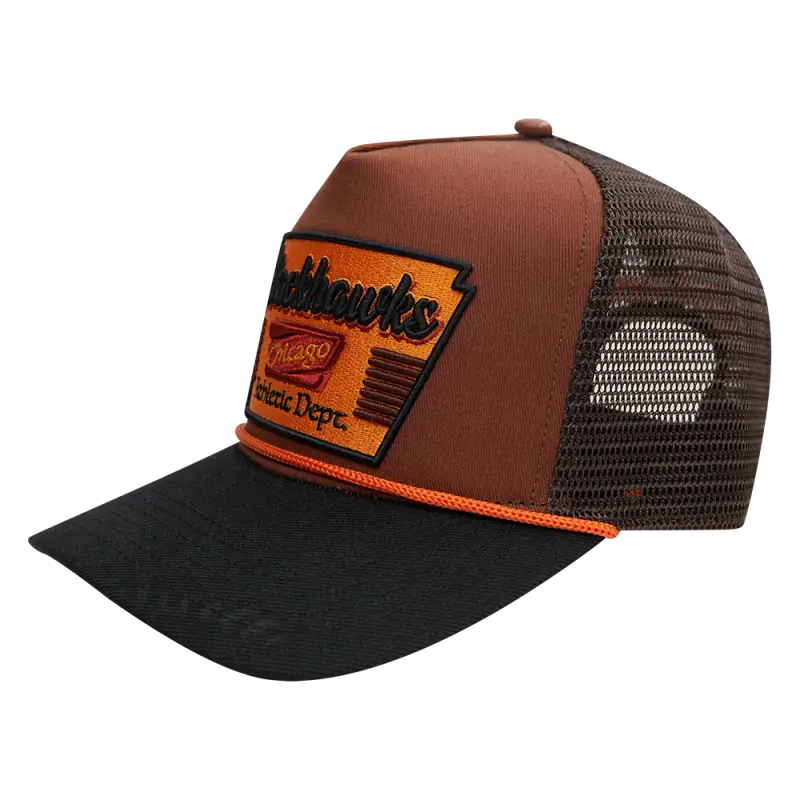 NHL CHICAGO BLACKHAWKS INSIGNIA WOOL 2 TONE PINCH FRONT TRUCKER (RUST\/BLACK)