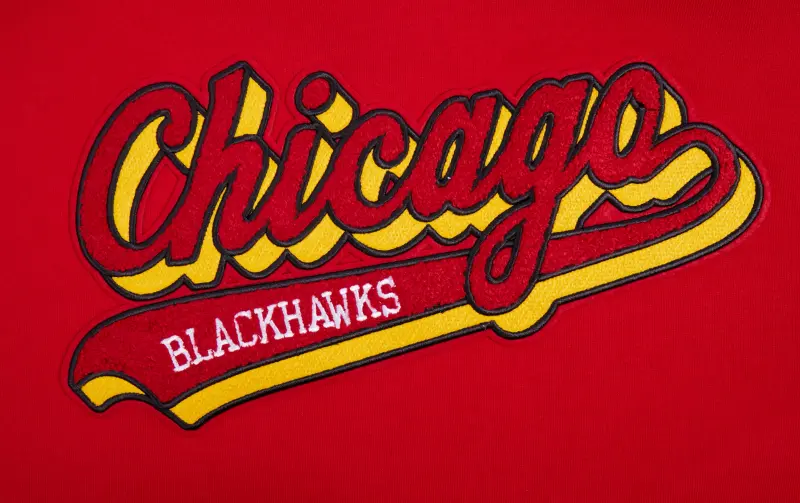 Home / Shop / SWEATSHIRTS / NHL CHICAGO BLACKHAWKS SCRIPT TAIL MEN’S RIB FLEECE PULLOVER HOODIE (RED\/BLACK)