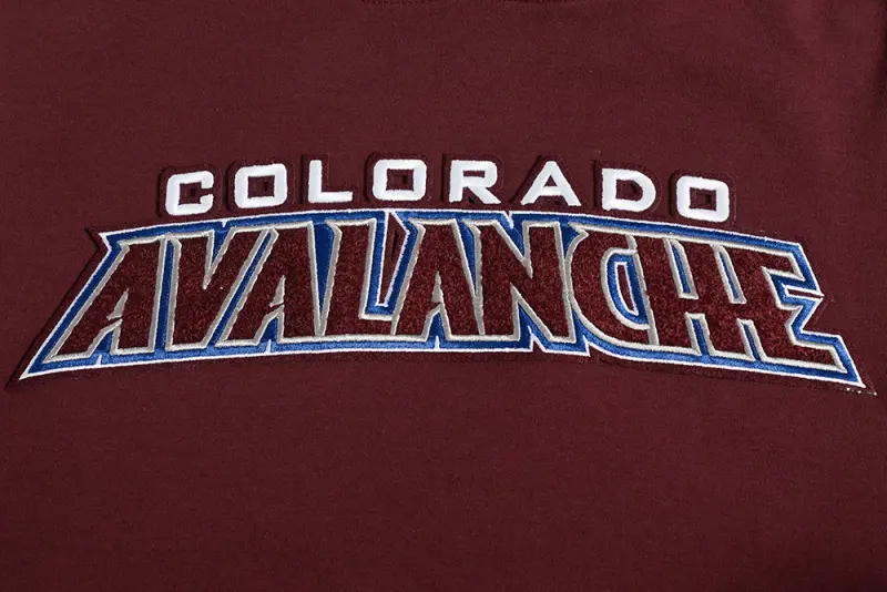 NHL COLORADO AVALANCHE CLASSIC CHENILLE MEN’S SHORT SLEEVE PULLOVER HOODIE (WINE)