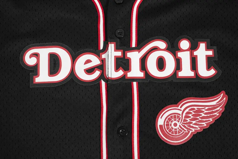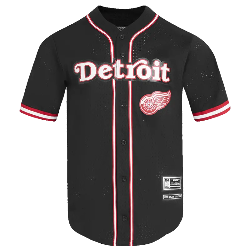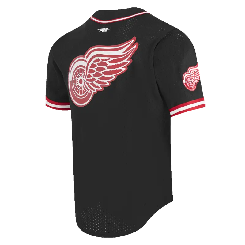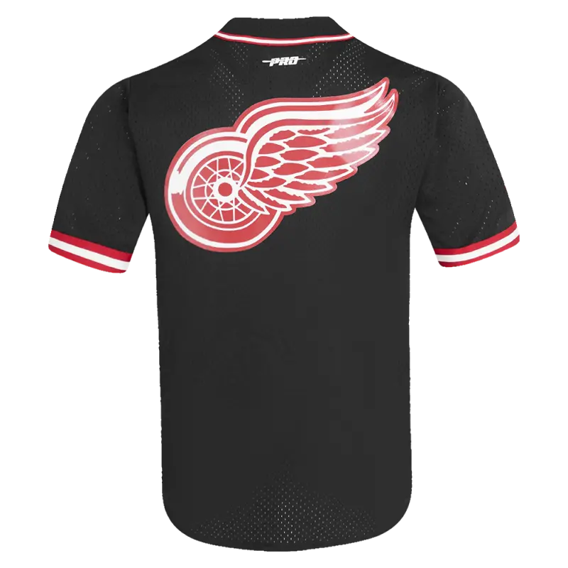 NHL DETROIT RED WINGS CLASSIC MESH MEN’S BUTTON DOWN SHIRT (BLACK\/RED)