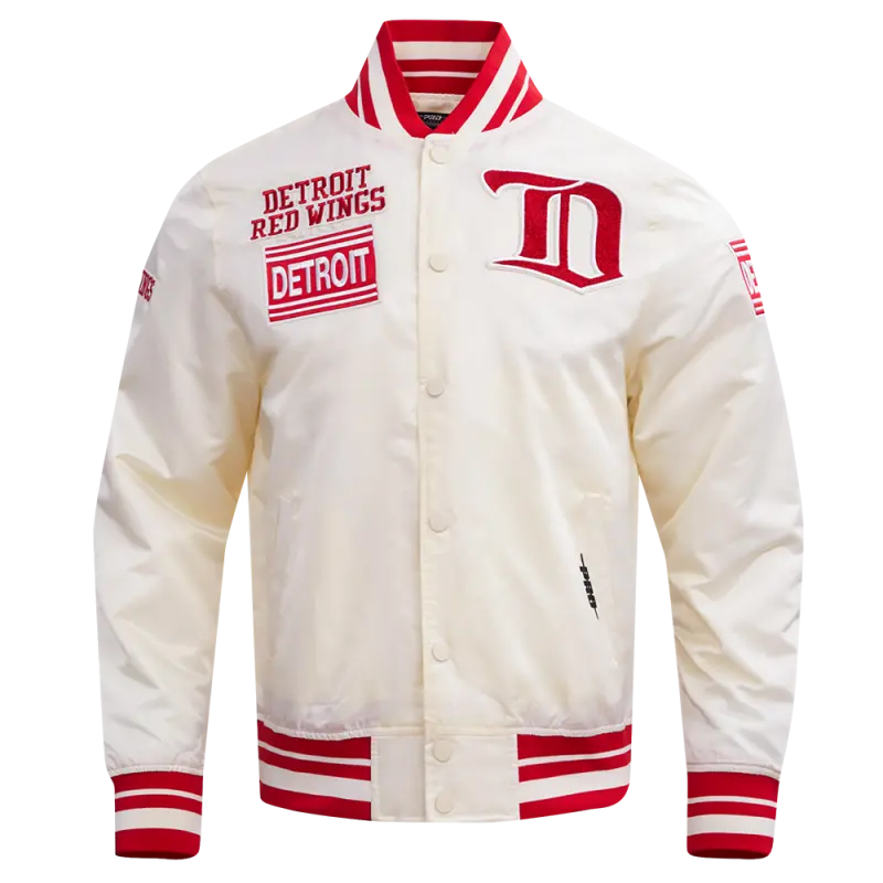 NHL DETROIT RED WINGS RETRO CLASSIC MEN’S RIB SATIN JACKET (EGGSHELL\/ RED)
