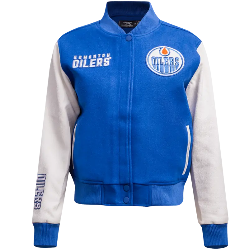 NHL EDMONTON OILERS CLASSIC WOMEN’S WOOL VARSITY JACKET (DODGER BLUE\/WHITE)