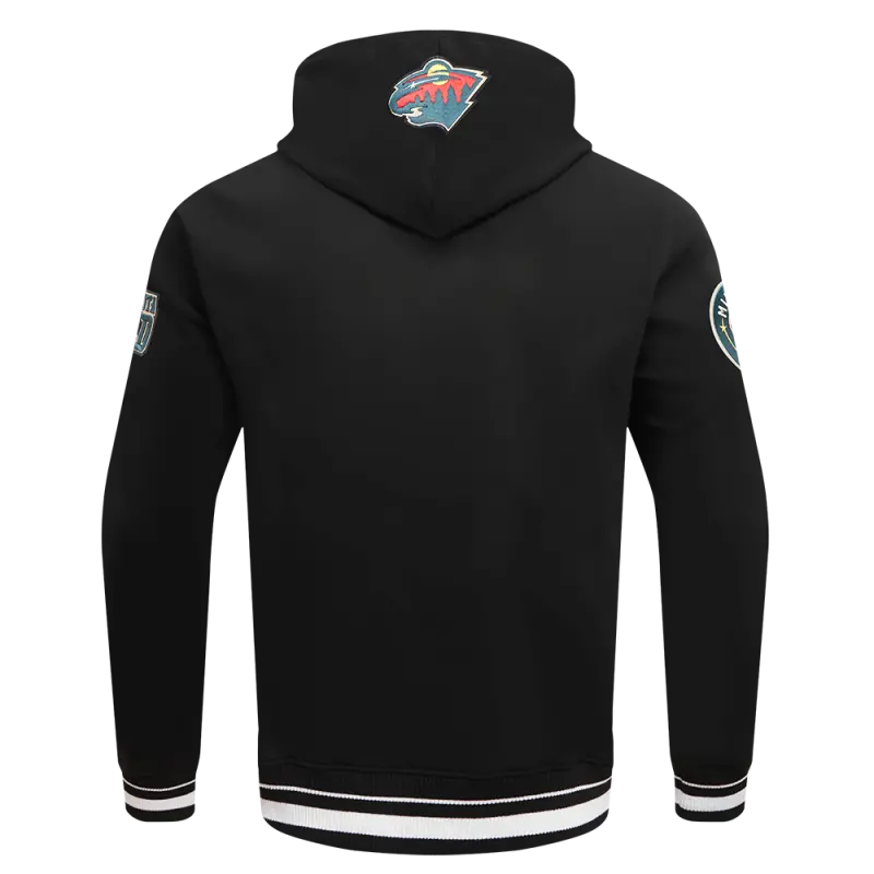 NHL MINNESOTA WILD SCRIPT TAIL MEN’S RIB FLC PO HOODIE (BLACK)