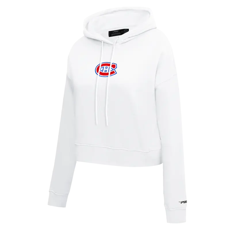 NHL MONTREAL CANADIENS CLASSIC WOMEN’S FLEECE CROPPED PULLOVER HOODIE (WHITE)