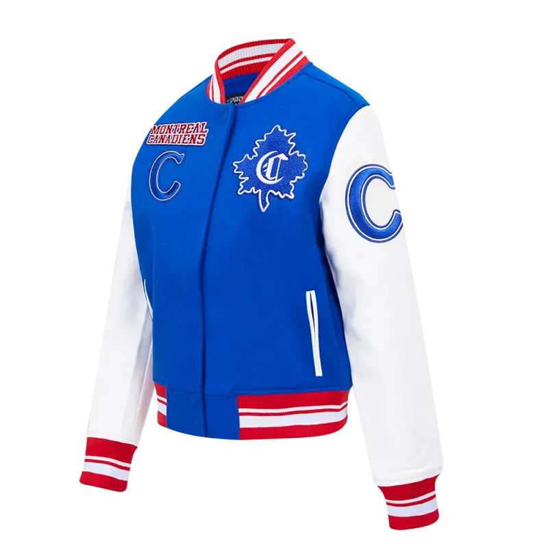 NHL MONTREAL CANADIENS RETRO CLASSIC WOMEN’S RIB WOOL VARSITY JACKET (ROYAL BLUE\/RED)