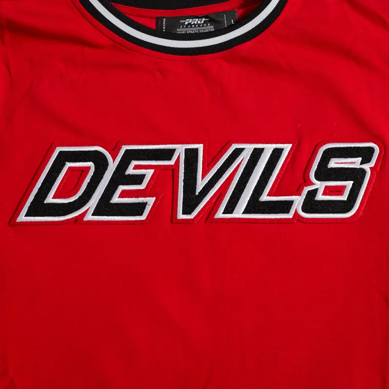 NHL NEW JERSEY DEVILS CLASSIC CHENILLE MEN’S DOUBLE KNIT TEE (RED\/BLACK)