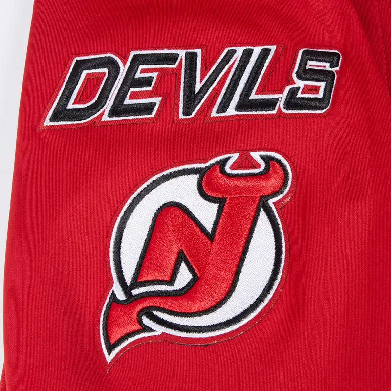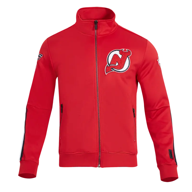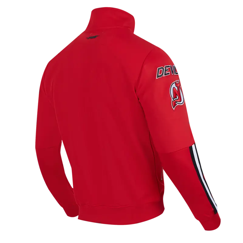 NHL NEW JERSEY DEVILS CLASSIC CHENILLE MEN’S DOUBLE KNIT TRACK JACKET (RED\/BLACK)
