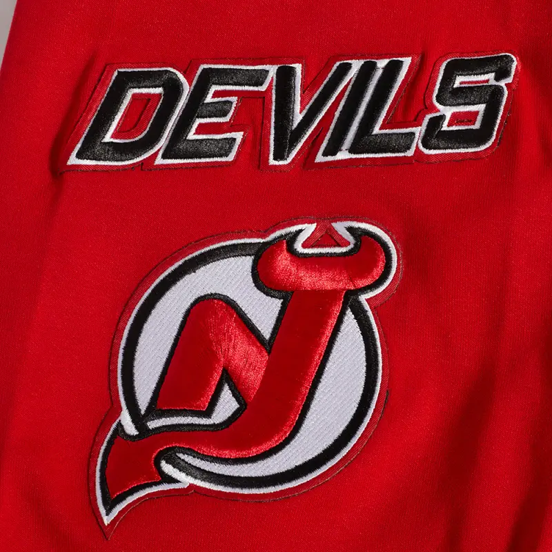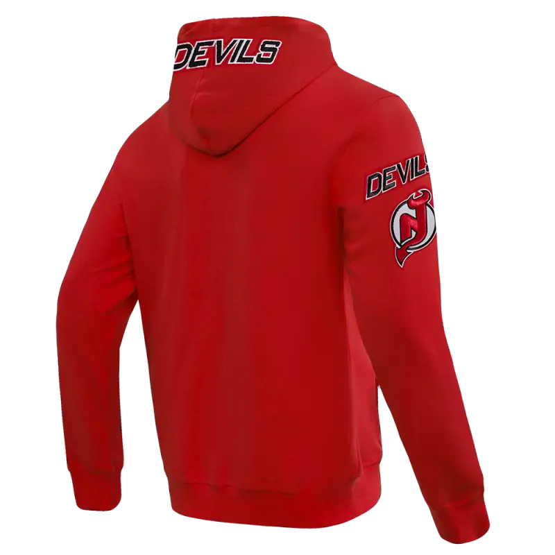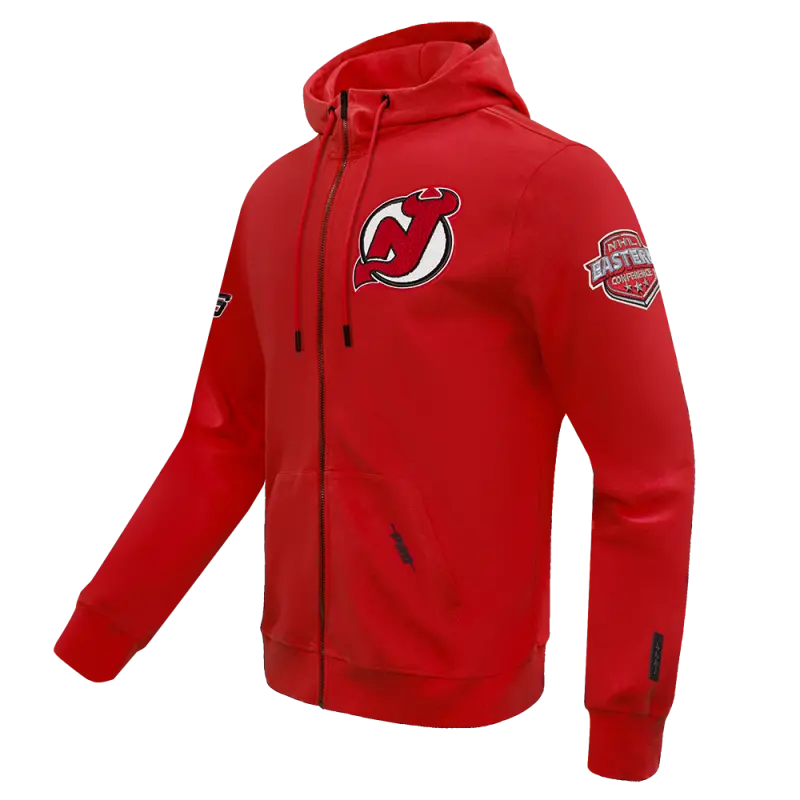 NHL NEW JERSEY DEVILS CLASSIC CHENILLE MEN’S FULL ZIP PULLOVER HOODIE (RED)