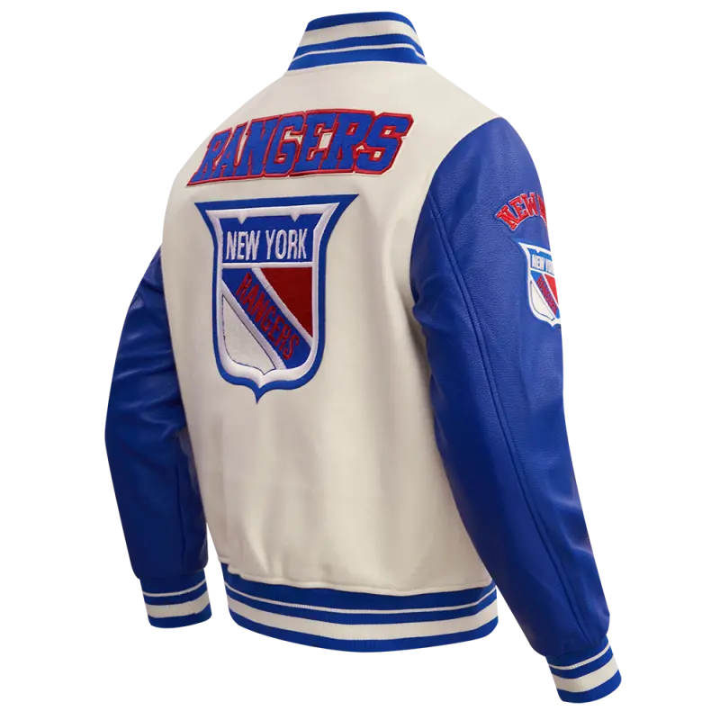 NHL NEW YORK RANGERS RETRO CLASSIC MEN’S RIB WOOL VARSITY JAC (EGGSHELL\/ ROYAL BLUE)