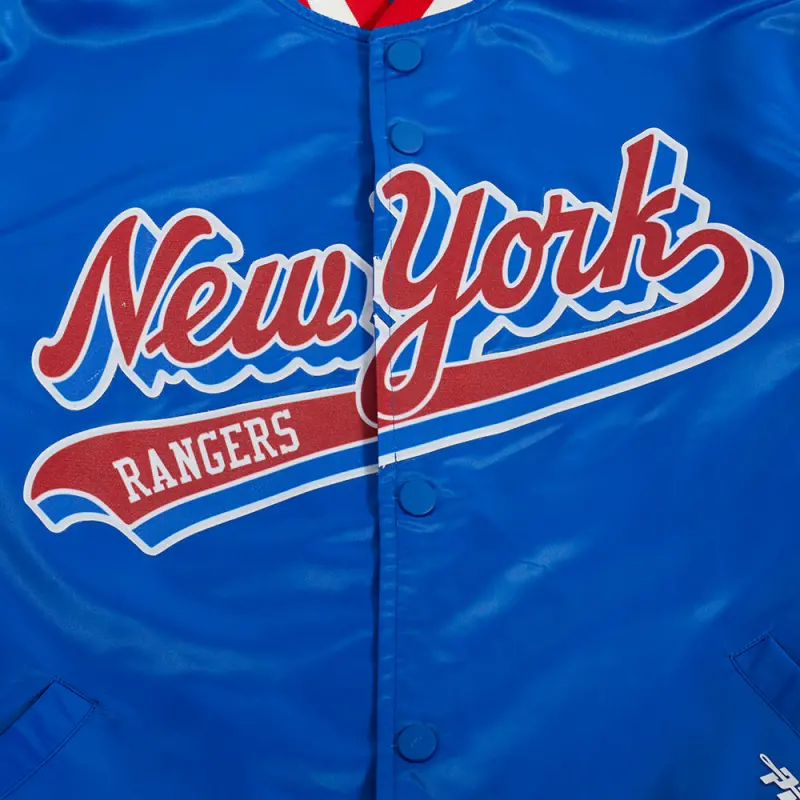 Home / Shop / JACKETS / NHL NEW YORK RANGERS SCRIPT TAIL MEN’S SATIN JACKET (ROYAL BLUE\/RED)