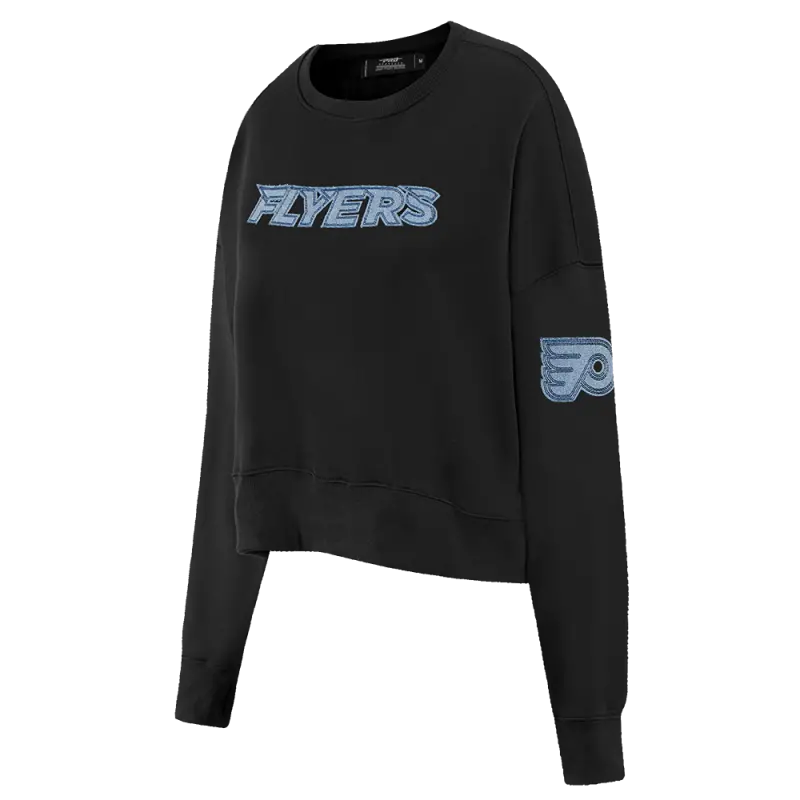 NHL PHILADELPHIA FLYERS VARSITY BLUES WOMEN’S CREWNECK (BLACK)