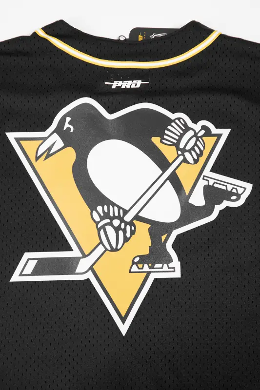 NHL PITTSBURGH PENGUINS CLASSIC MEN’S MESH BUTTON DOWN JERSEY (BLACK\/YELLOW)