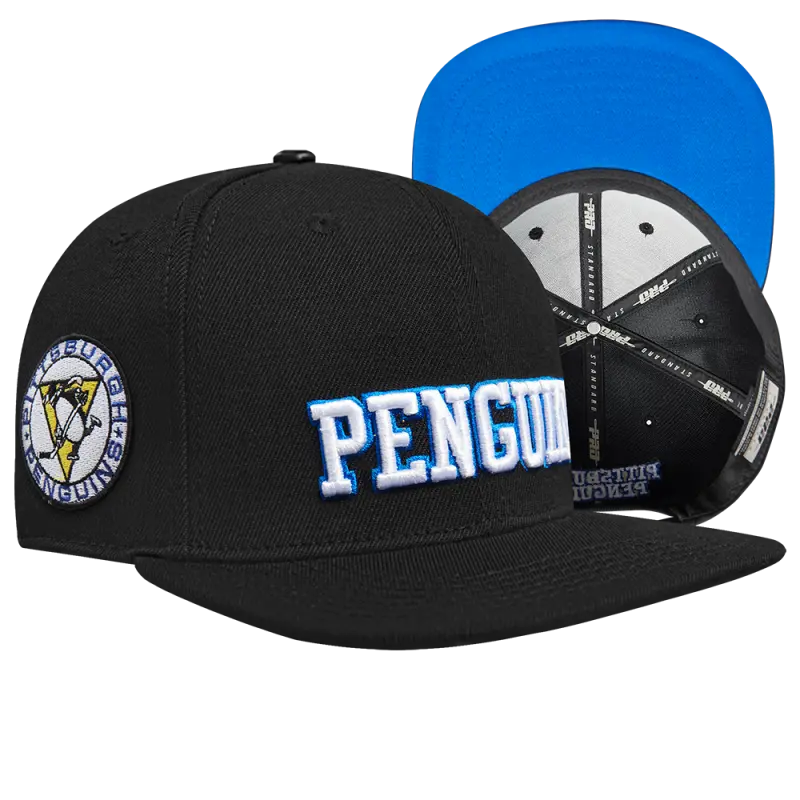 The Pro Standard Premium NHL Pittsburgh Penguins Retro Classic Unisex Wordmark Logo Wool Snapbac (Black)