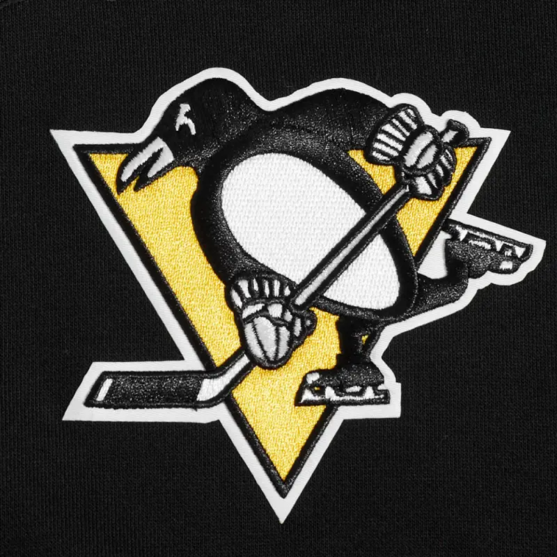NHL PITTSBURGH PENGUINS SCRIPT TAIL MEN’S RIB FLEECE PULLOVER HOODIE (BLACK\/YELLOW)