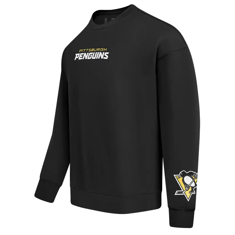 NHL PITTSBURGH PENGUINS WINGSPAN MEN’S DROP SHOULDER FLEECE CREWNECK (BLACK)