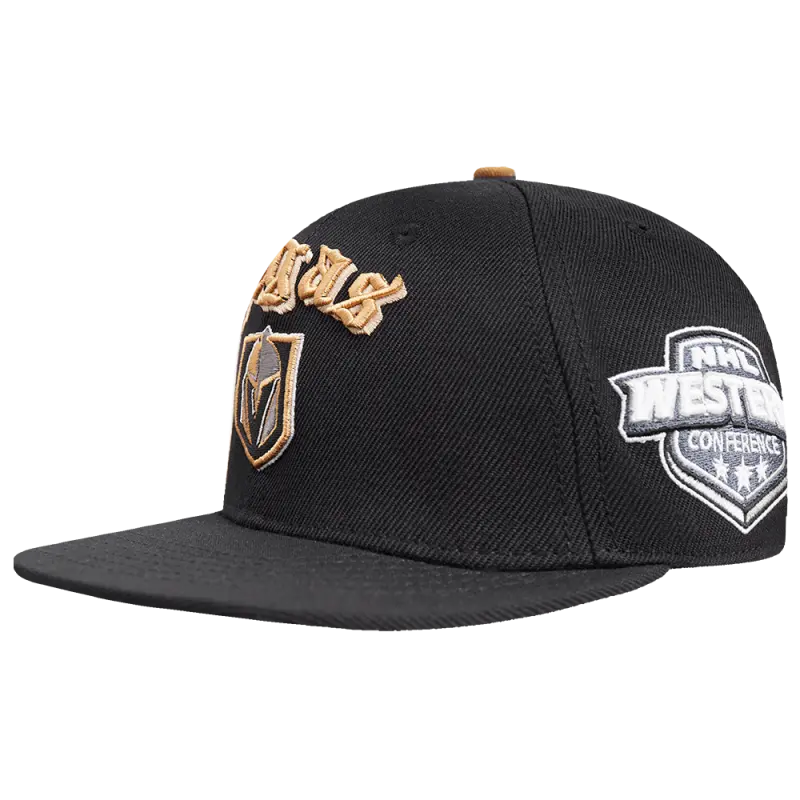 NHL VEGAS GOLDEN KNIGHTS OLD ENGLISH UNISEX 6 PANEL SNAPBACK HAT (BLACK)