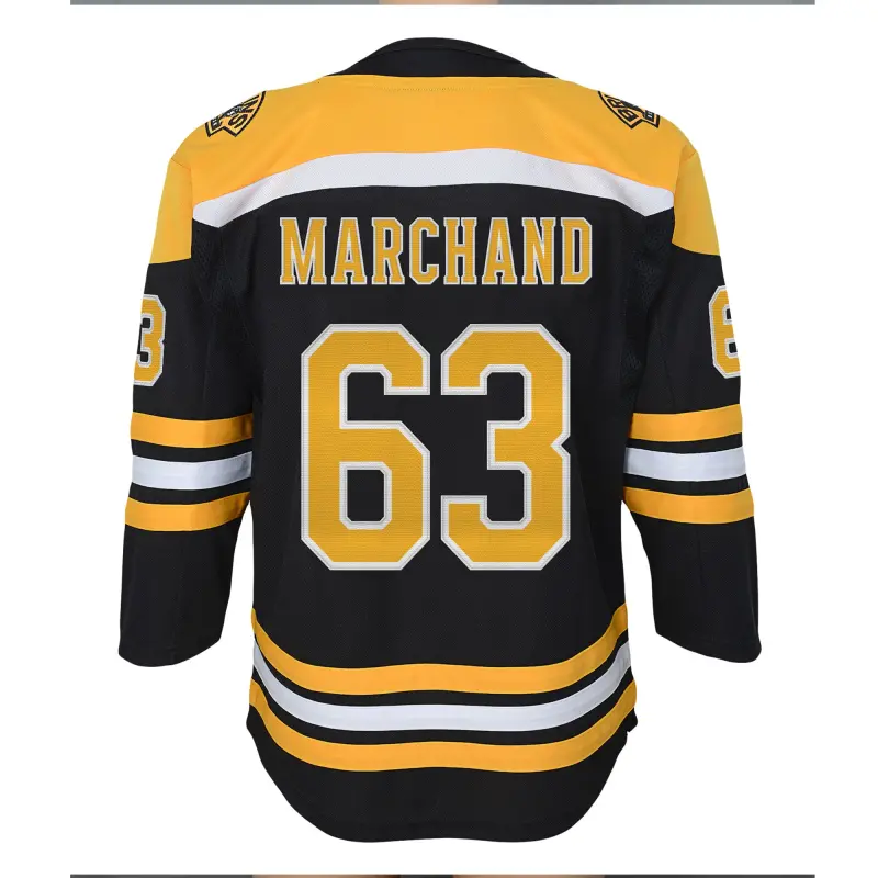 • Please Note: This product ships directly from the USA. Showcase your youngster's one-of-a-kind swagger and budding hockey fandom with this Boston Bruins Brad Marchand Premier Player jersey. This piece of gear is just what your kiddo needs for their game day collection. This unique jersey will be a staple in your young fan's Boston Bruins wardrobe, with its bold design and crisp team graphics.